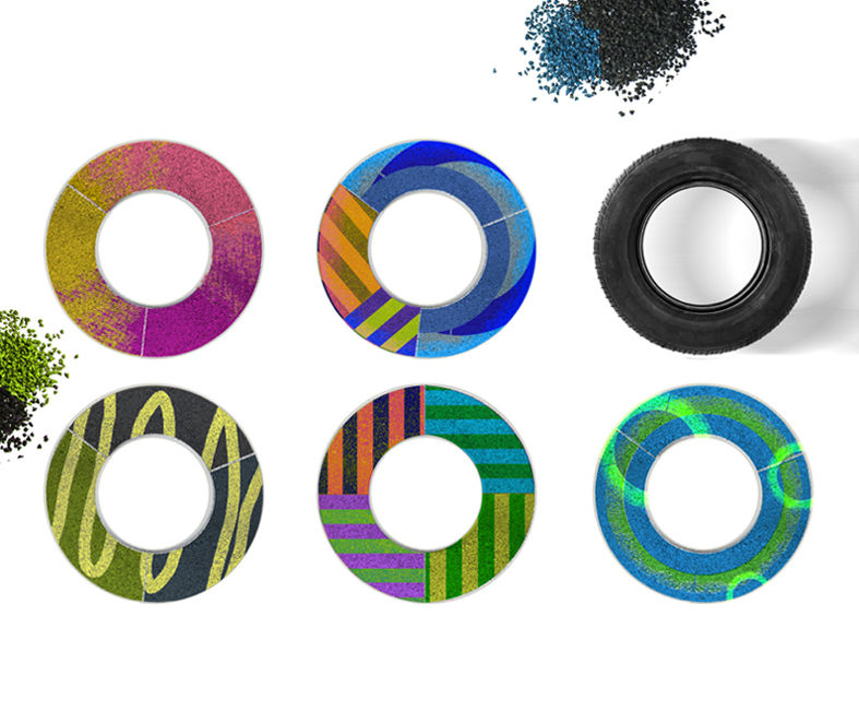 These round urban benches are made of two cement elements and recycled tires as a soft seat. We want to bring the use of this unique material into a new level.